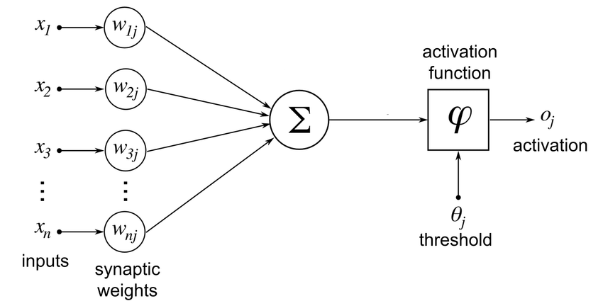 Thus, the equation of an artificial neuron combines the weighted sum and the activation function to generate the output based on its inputs and learned weights.