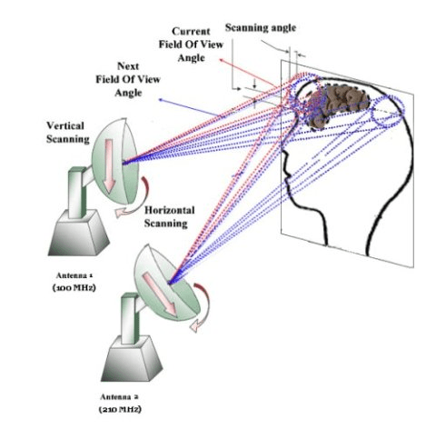- Transmission: The system uses high-frequency electromagnetic waves to penetrate the skull and interact with the brain. Two different frequencies are transmitted into the brain.