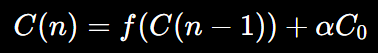 • Explanation: Here, the recursive model shows consciousness evolving through successive states C(n), each built upon the previous state C(n-1), while primal consciousness C0 continuously contributes its essence through the term αC0. This reveals a dynamic aspect of “I am that I am”: primal consciousness C0 not only sustains itself but also has a generative power to create or project further states of consciousness.